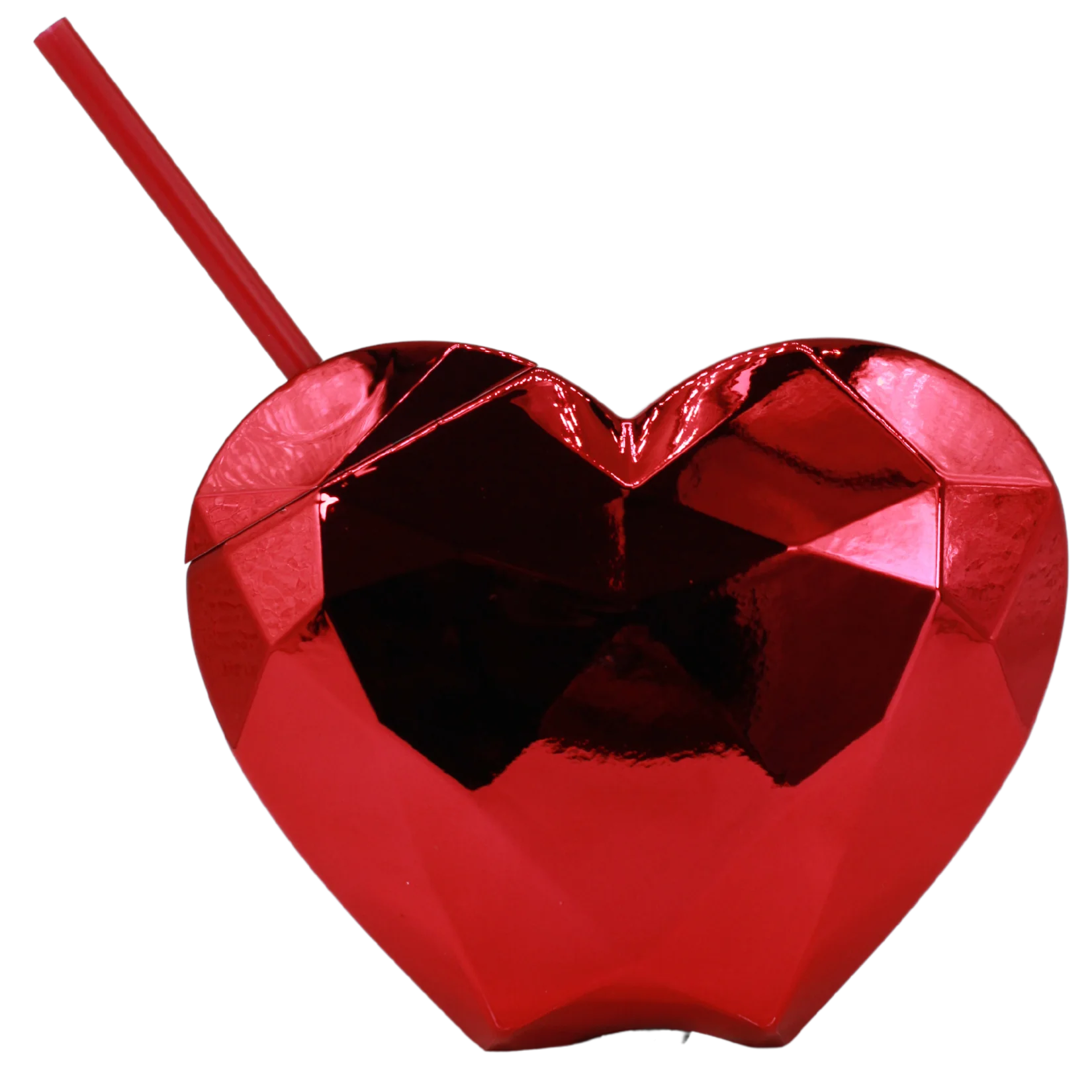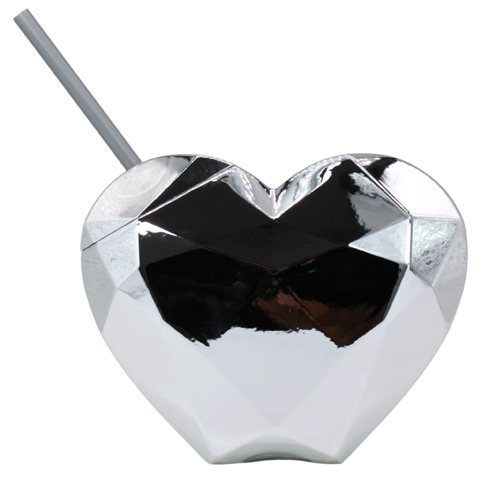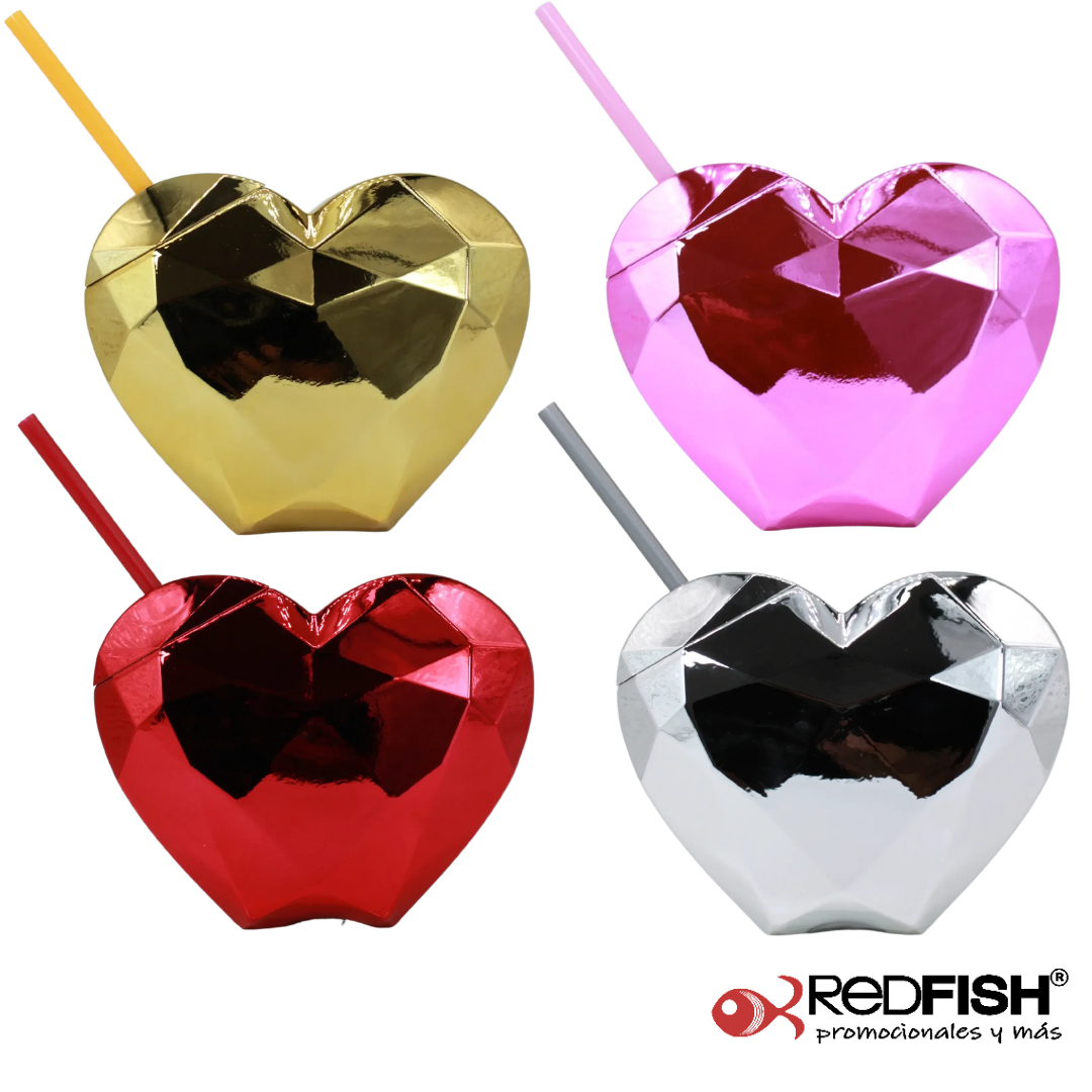 ÁNFORA EN FORMA DE CORAZÓN COLOR METÁLICO CON POPOTE 591 ml.