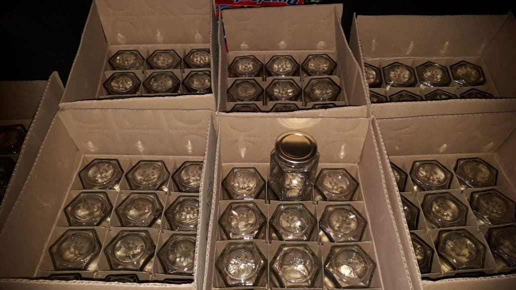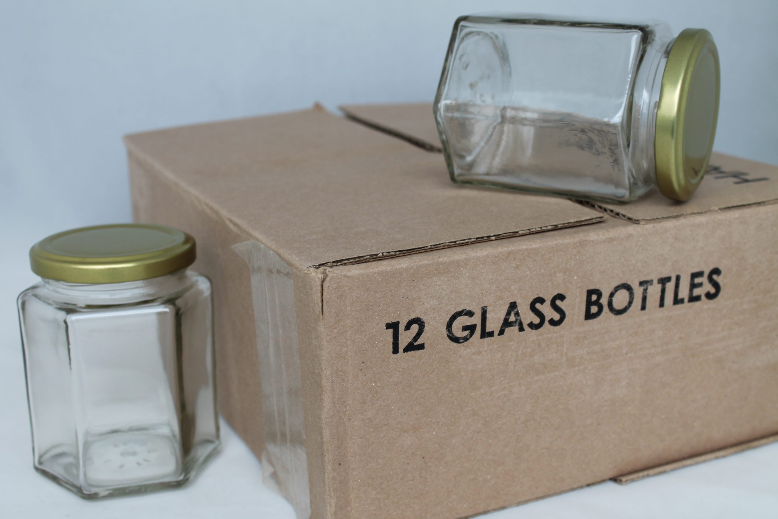 CAJA DE ENVASE HEXAGONAL DE VIDRIO