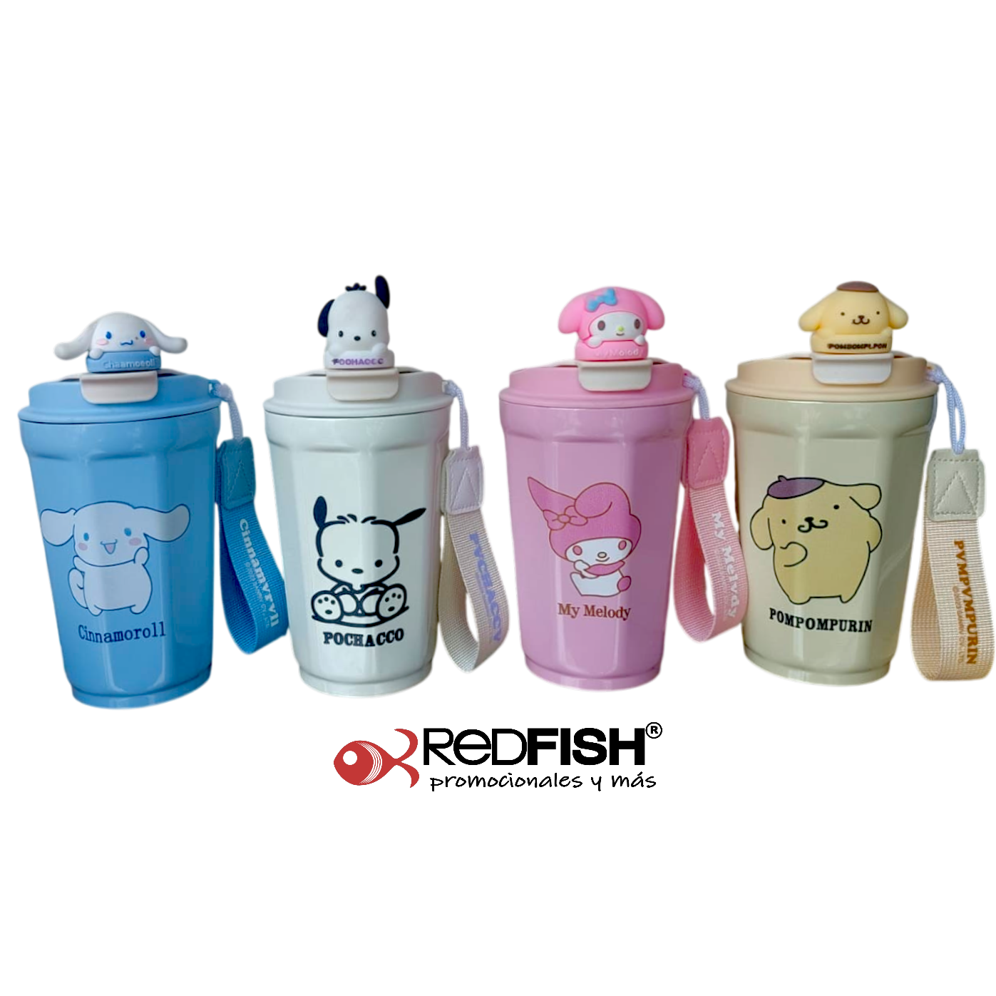 Termo portátil de cierre hermético con correa. Personajes de Sanrio.
