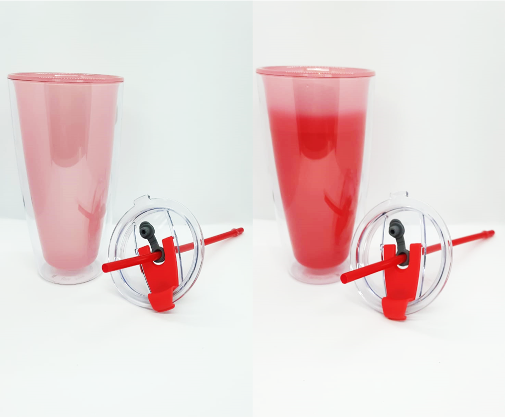 Vaso de acrílico de doble pared Tapa de acrílico Popote de plástico rígido Vaso Cambia de color con bebida fría