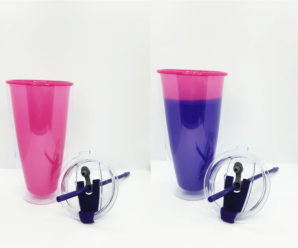 Vaso de acrílico de doble pared Tapa de acrílico Popote de plástico rígido Vaso Cambia de color con bebida fría