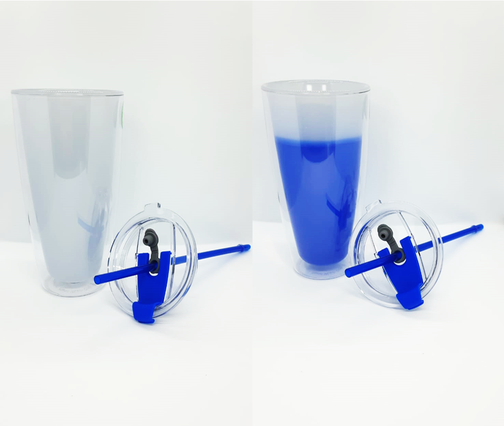 Vaso de acrílico de doble pared Tapa de acrílico Popote de plástico rígido Vaso Cambia de color con bebida fría