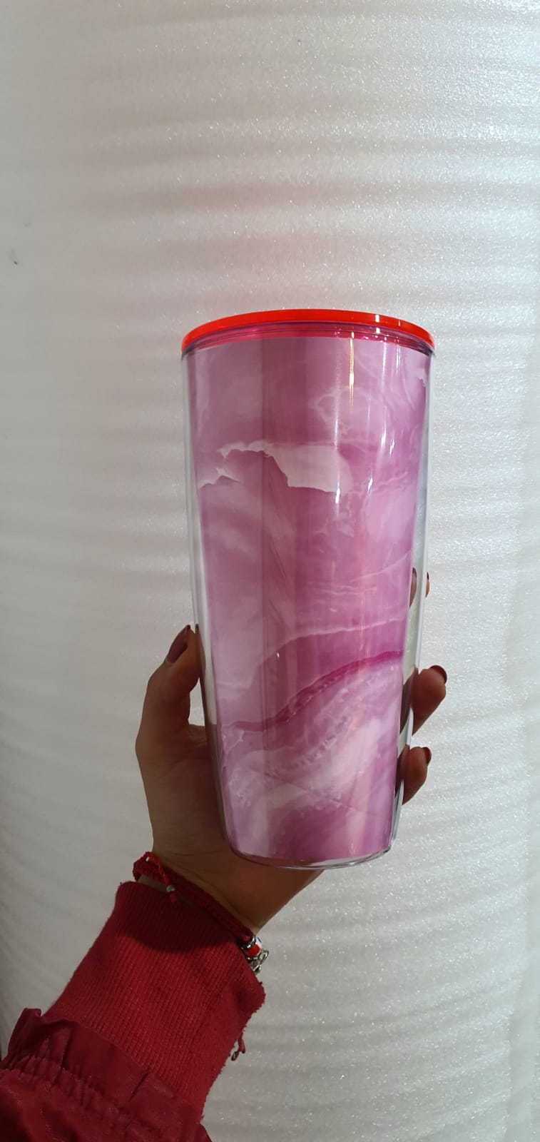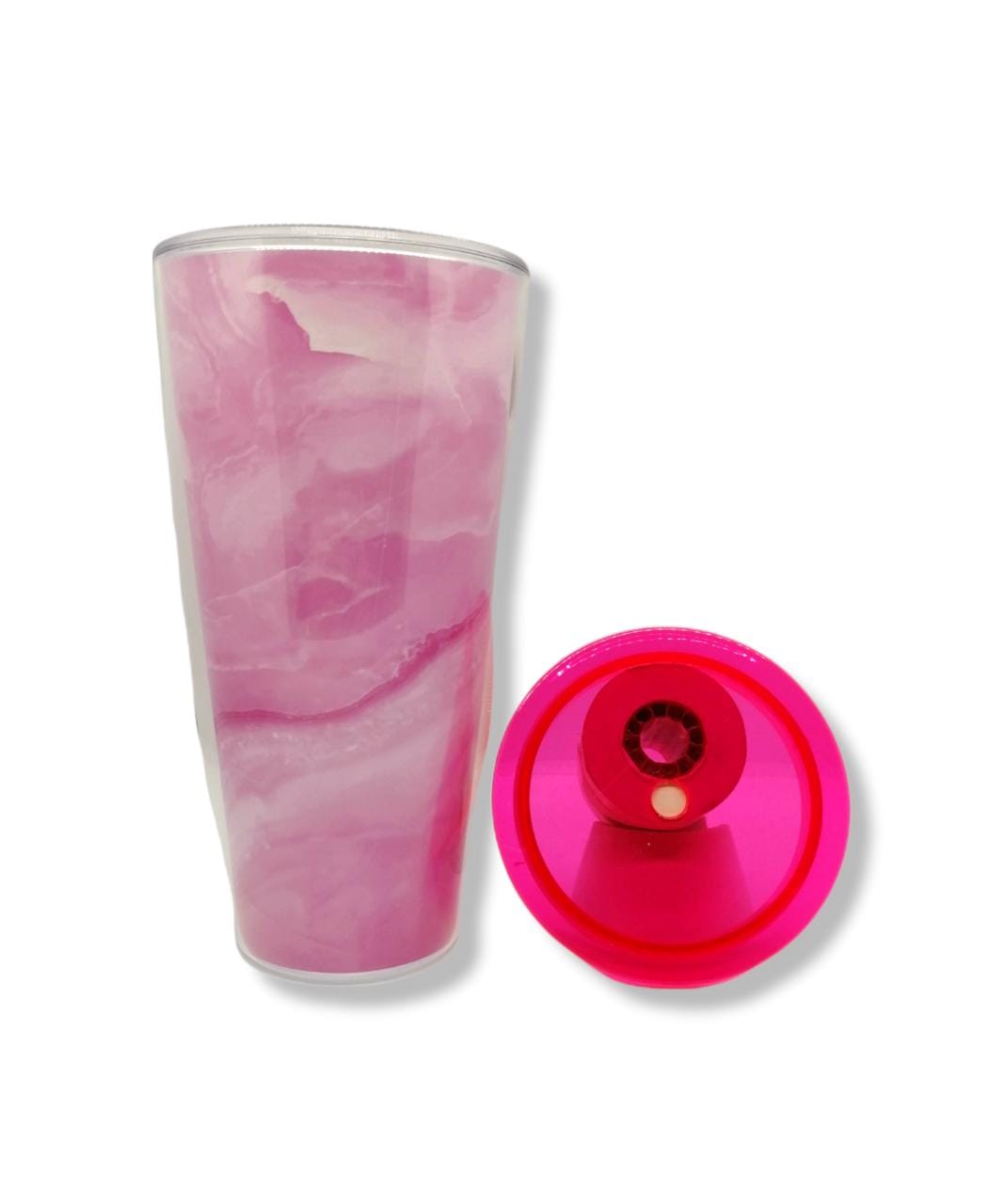 Vaso Glitter ch con popote Rosa Fucsia Look
