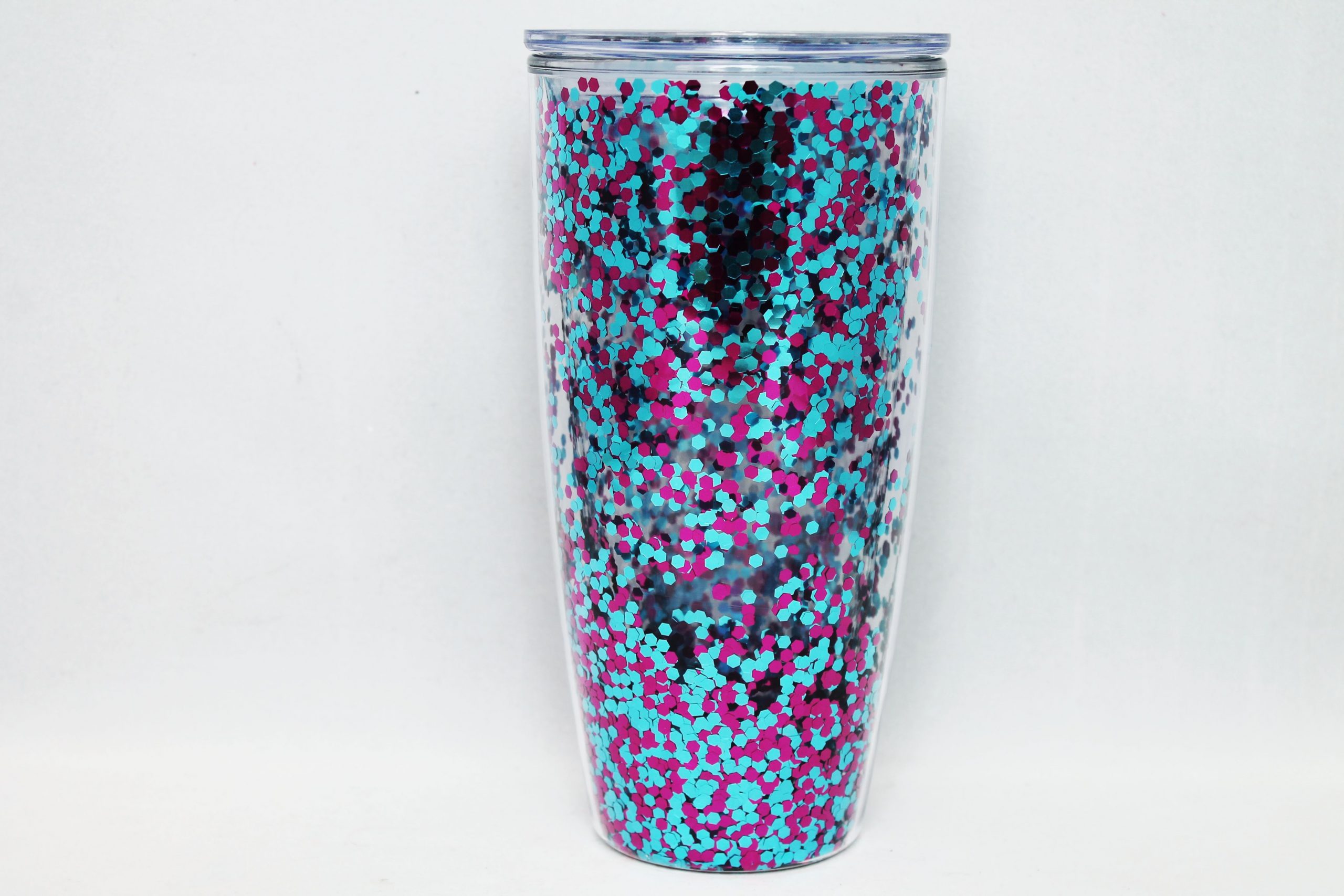 VASO GLITTER POPOTE AZUL/ ROSA 800 ml