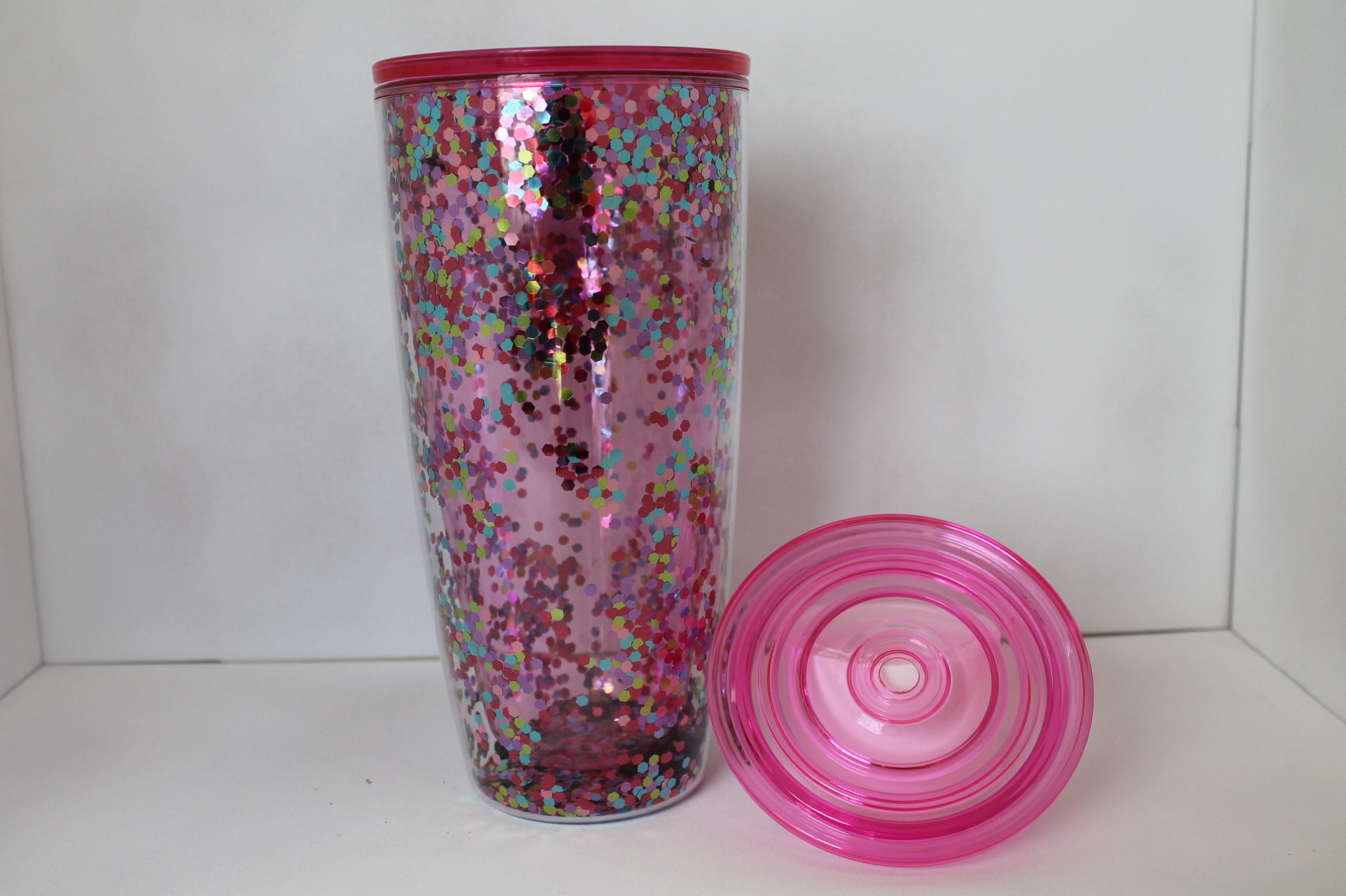 Vaso Glitter ch con popote Rosa Fucsia Look