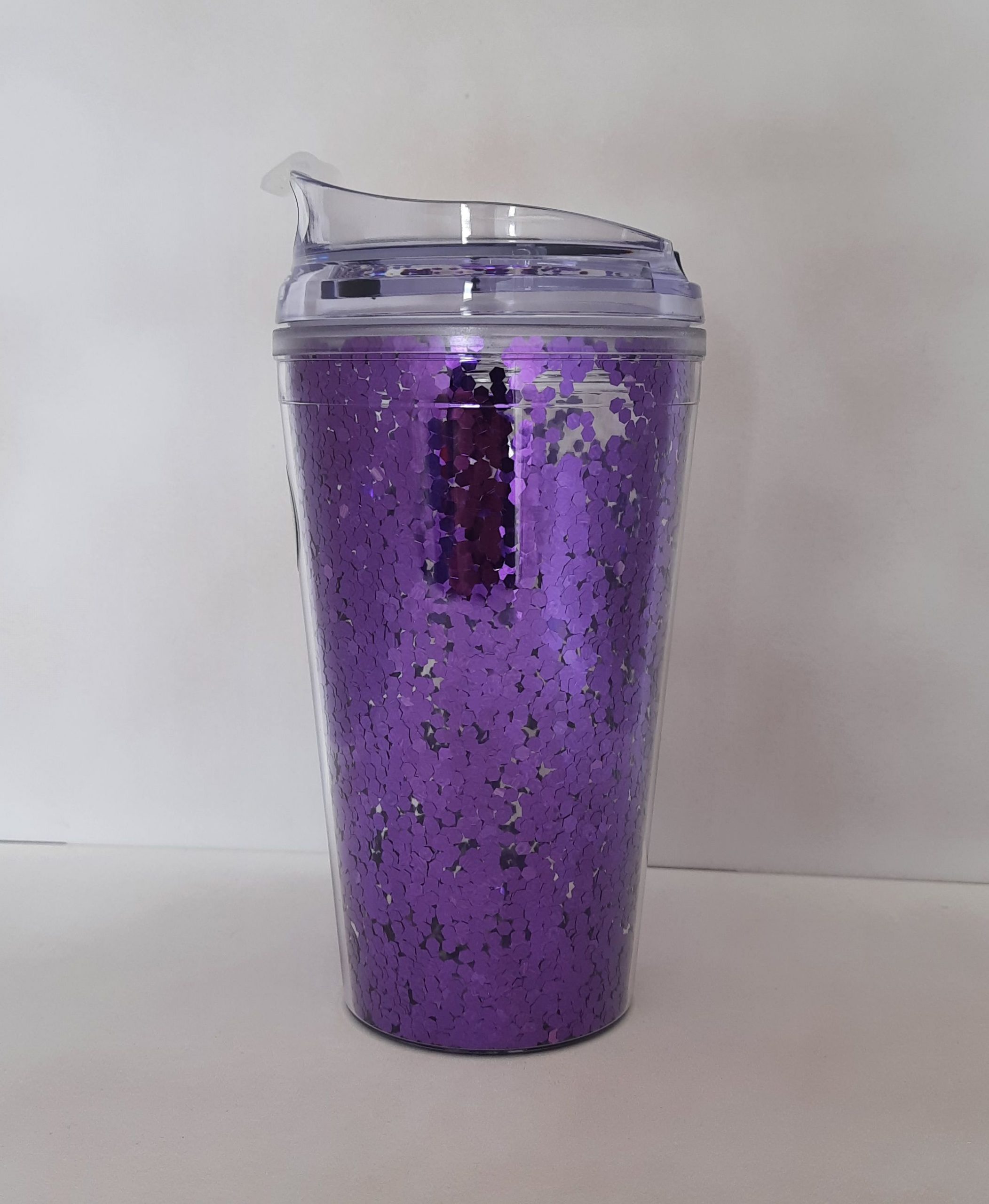 Vaso Glitter ch con popote Rosa Fucsia Look