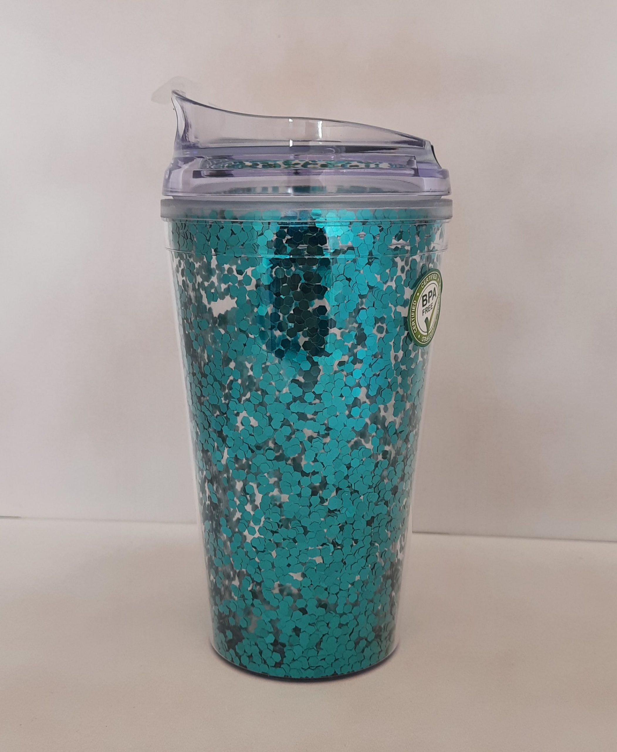 Vaso Glitter ch con popote Rosa Fucsia Look