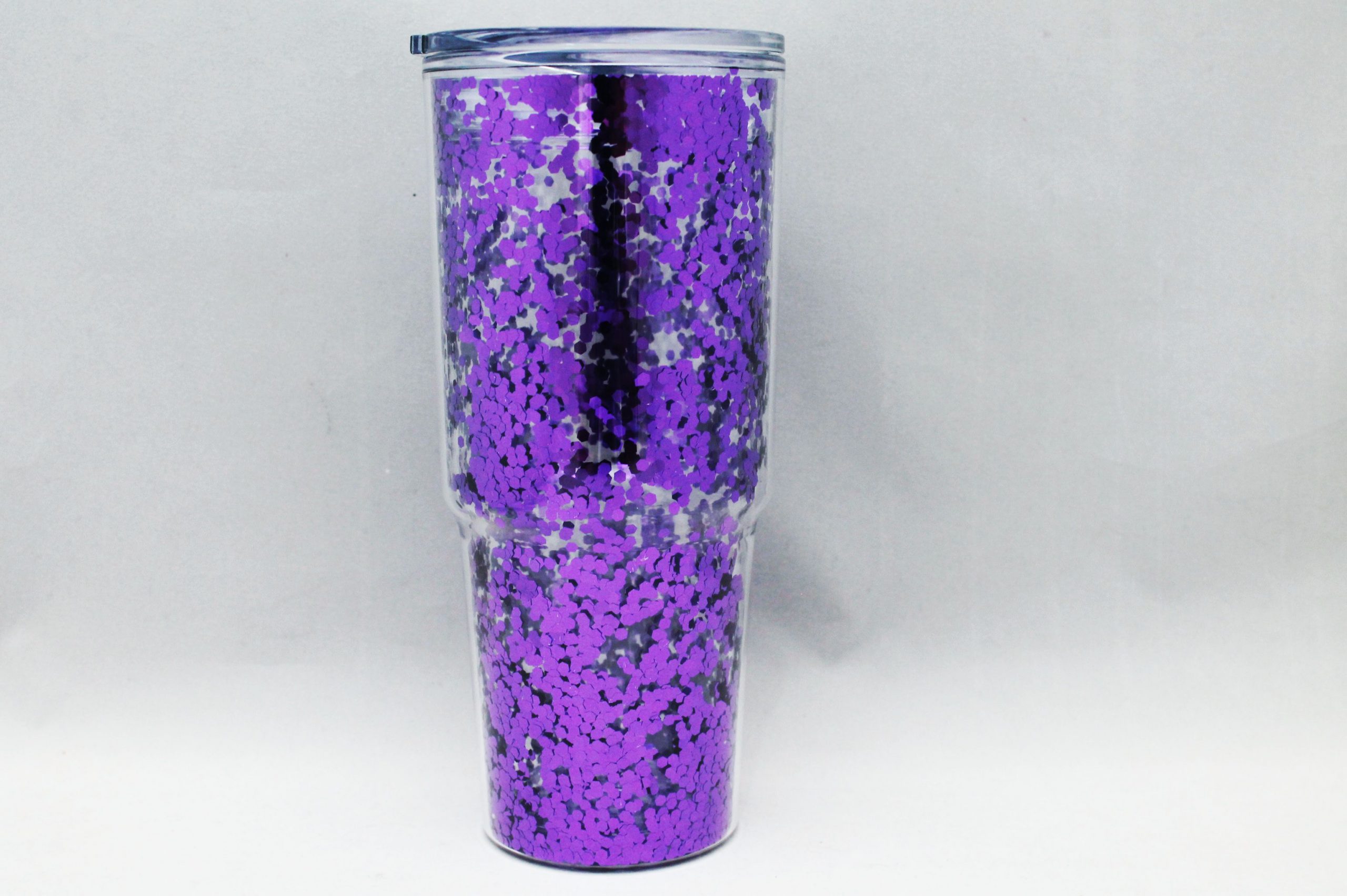 Vaso Glitter ch con popote Rosa Fucsia Look