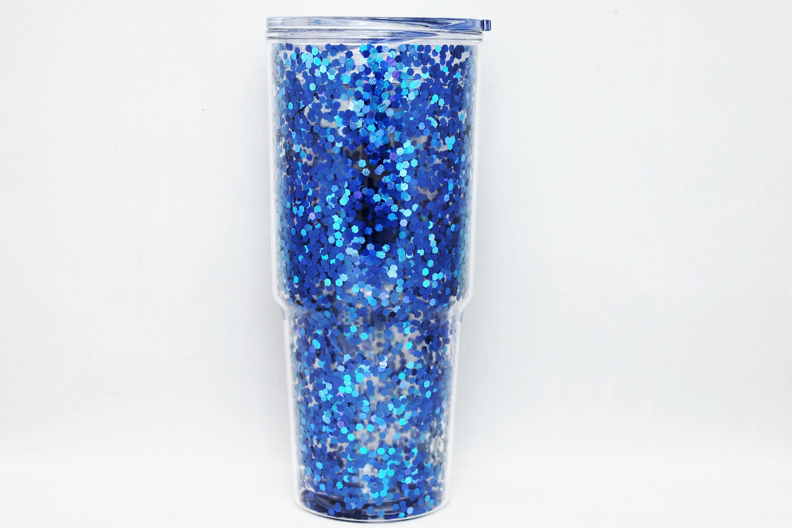 Vaso Glitter ch con popote Rosa Fucsia Look