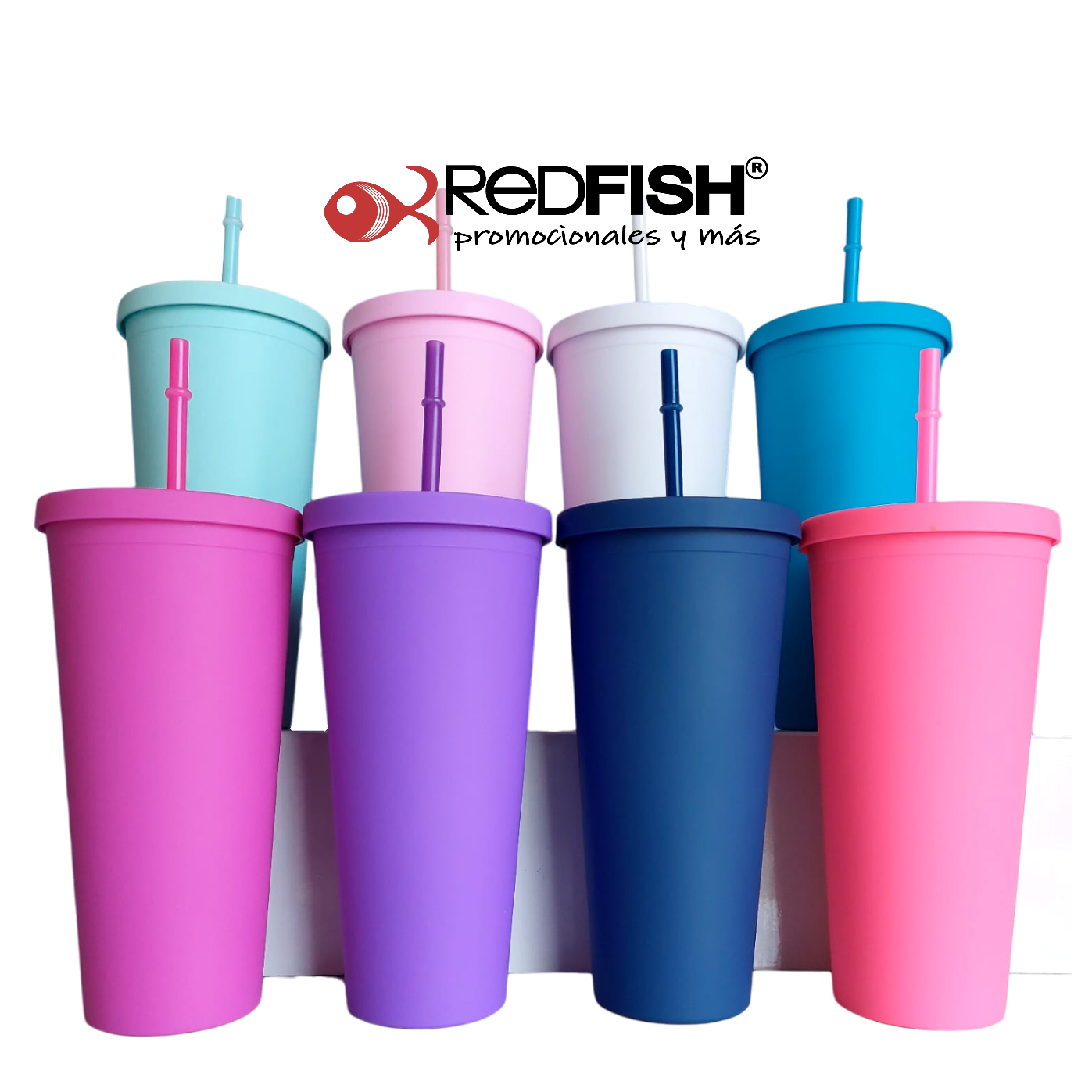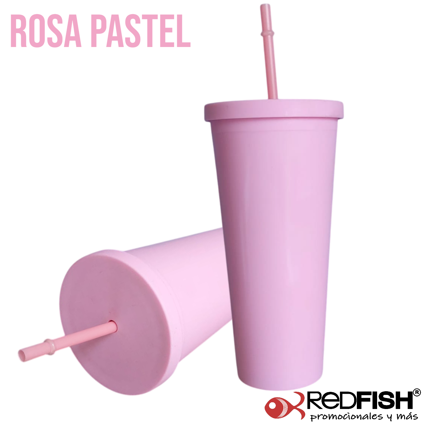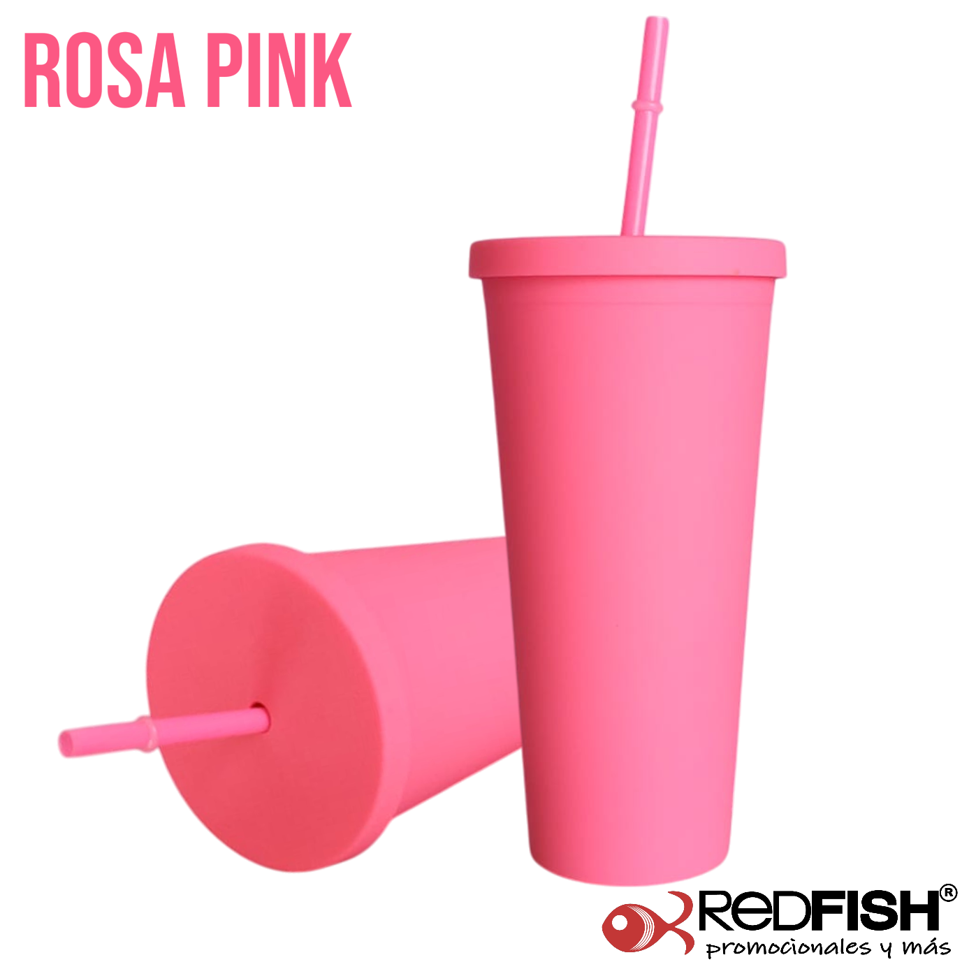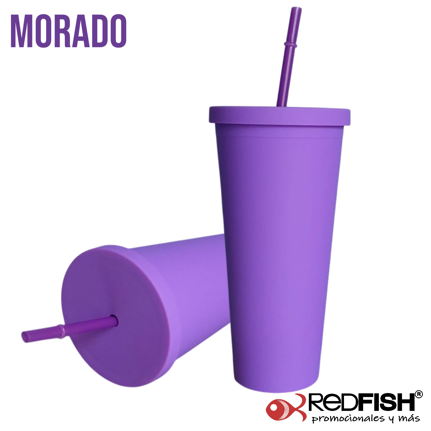 Vaso con textura exterior de terciopelo con tapa de rosca y popote.
